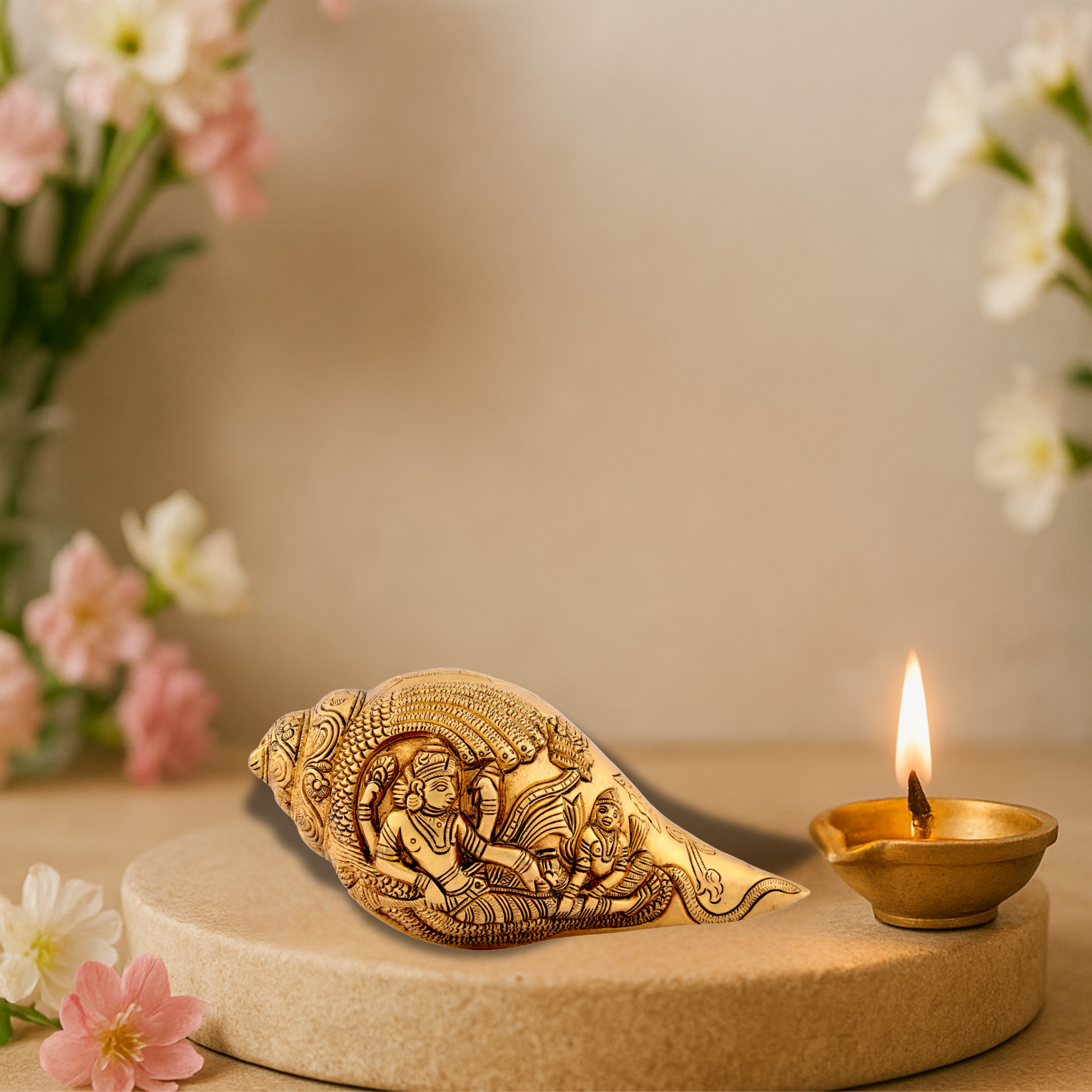 Craftsmanship: Handcrafted by skilled artisans with fine detailing on the curves and motifs of the shankh.